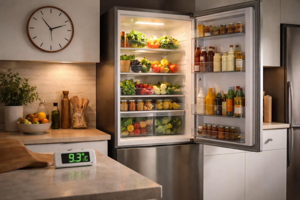 La température extérieure joue également un rôle décisif. Si la température ambiante est élevée, par exemple supérieure à 25 °C, la durée de conservation diminue significativement. Ce phénomène lié à la réfrigération est illustré par le fait qu’à température ambiante élevée, le frigo perd rapidement sa capacité à maintenir le froid. Pour optimiser la fonction de réfrigération durant une panne, garder la porte fermée et éviter d’ouvrir le frigo inutilement devient primordial. Cela permet de préserver la fraîcheur le plus longtemps possible et d’éviter une montée rapide en température, qui peut nuire gravement à la sécurité alimentaire.